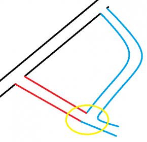 Mam obecnie problem z interpretacją pewnego skrzyżowania, które znajduje się w mojej miejscowości. Żeby lepiej je zobrazować, pokażę je na prostym rysunku (wiem, że w paincie, ale lepszego nie potrafię zrobić :D ):
